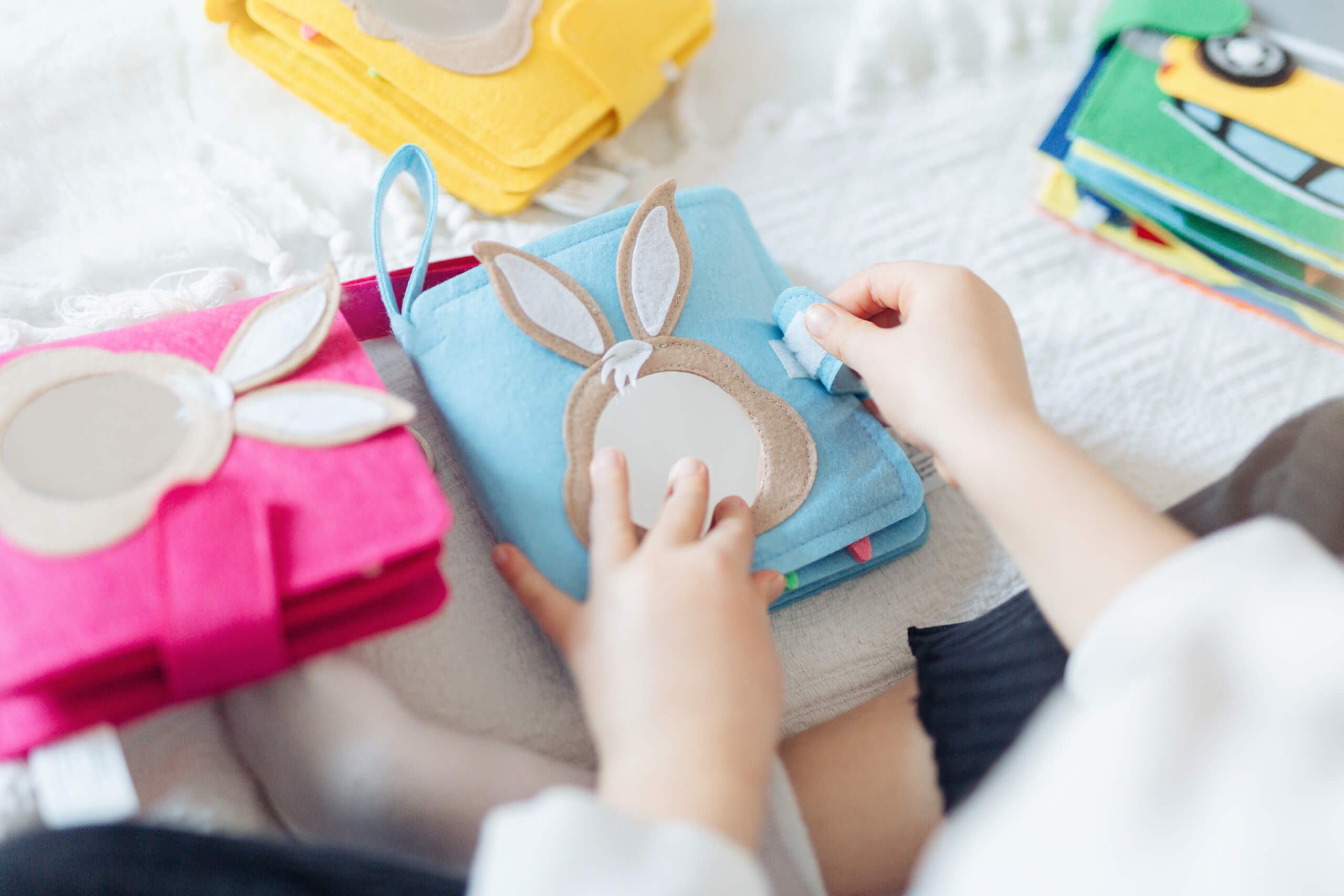 Kroz 8 stranica raznolikog sadržaja beba će istražiti vlastiti lik kroz zeku ogledalce, razviti senzornu motoriku uz nasmijano sunce te zagolicati maštu i znatiželju pronalazeći skrivene vesele životinje. U ovoj očaravajućoj knjizi za bebe ima toliko toga za istražiti. Različite teksture dodirom će razviti senzornu motoriku. Svaka stranica sadrži šarene ilustracije i pružajući zanimljive aktivnosti koje podstiču koordinaciju ruka i oko. Pričvrstite knjigu za dječija kolica i zabava u pokretu je zagarantovana.