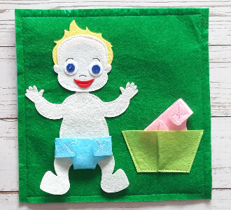 Promijeni bebi pelenu – može pomoći djeci koja se nalaze u procesu odvikavanja od pelena, jer kroz interakciju s bebom na stranici razvijaju osjećaj zrelosti i razumijevanje procesa. Ova aktivnost također razvija fine motoričke vještine, poput otkopčavanja i zakopčavanja pelene. Djeca kroz ovu igru uče o važnosti njege, higijene, ali i samostalnosti, jer se mogu identificirati s bebom u procesu prelaska iz pelena u gaćice.