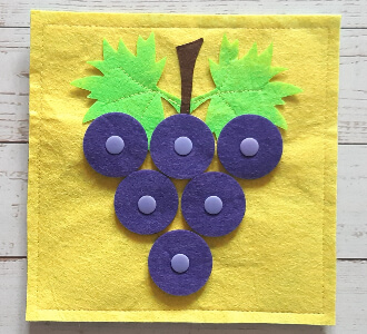 Grožđe sa plastičnim drikerima – Ova stranica podučava djecu o voću dok razvijaju koordinaciju ruku i očiju kroz kačenje grožđa.