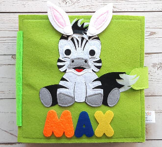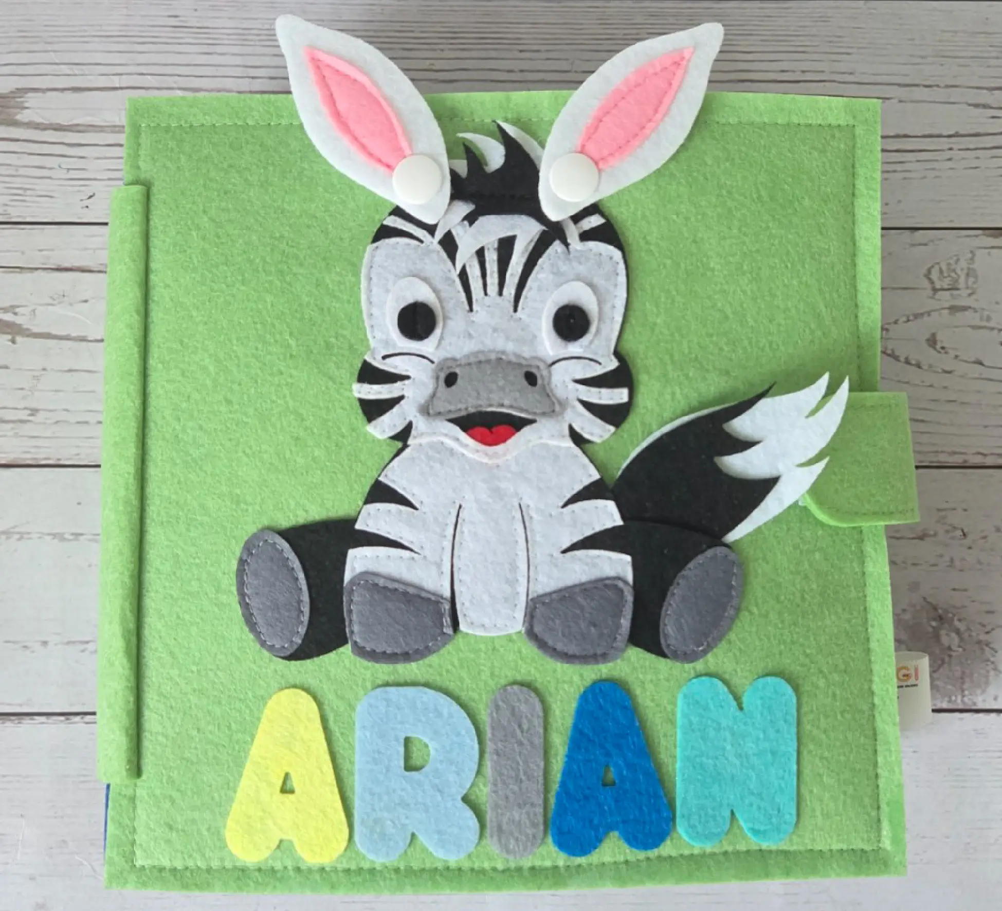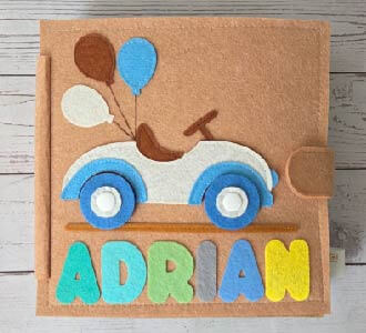 Personalized Quiet Book for Boys – create a book that enhances children's skills through interactive pages. Each page offers learning through fun activities such as puzzles, zippers, and number recognition. You can choose the pages to include in the book, customizing it to your child's interests and needs. The book is suitable for children aged 1 to 7 years. Add your child’s name for a fully personalized experience!