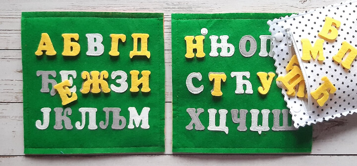 Ćirilica tj azbuka sa 30 slova plus 15 dodatnih najčešćih slova za kombinovanje različitih riječi. Ova stranica podstiče rano učenje azbuke i sklapanje prvih riječi. Savršena za razvoj pismenosti.
