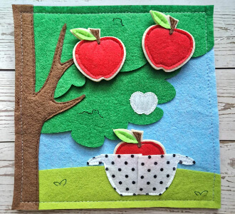 Jabuke na čičak – Stranica koja podučava koncept "unutra i van", dok djeca skidaju i vraćaju jabuke. Ova aktivnost razvija logičko razmišljanje i koordinaciju.