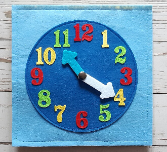 Sat sa brojevima i pokretnim kazaljkama – Montessori metoda učenja brojeva i pojmova vremena. Djeca vježbaju prepoznavanje brojeva i uče kako da čitaju vrijeme pomjerajući kazaljke sata.