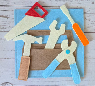 Korpa sa alatom: kliješta, ključ, šarafciger, žaga, čekić – Djeca kroz igru sa alatima razvijaju spretnost i uče o osnovnim alatima, što podstiče kreativnost i rješavanje problema.