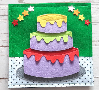 Slagalica torta od tri dijela (čičak) + učenje odnosa velikog i malog – Ova stranica podučava djecu kako se slagalice slažu po veličini, dok usvaja razumijevanje pojmova velikog i malog.